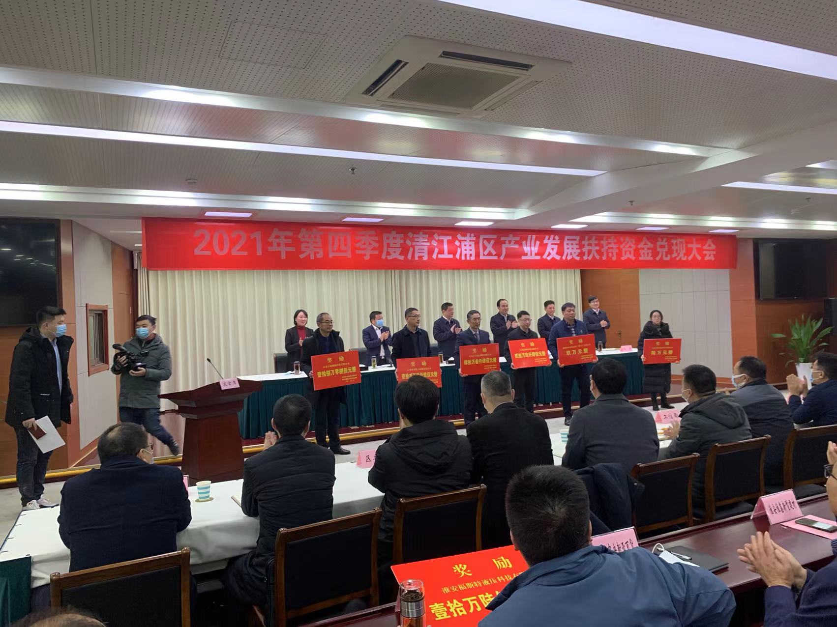 1月27日上午,区委副书记高进锋通报全区2021年第四季度产业发展扶持资金兑现情况,区领导向获奖企业颁发产业发展扶持资金奖牌,拟分三批进行(新增产能奖、财税贡献奖、科技创新奖,每批10家)。开云体育-开云(中国)一站式服务官方网站
