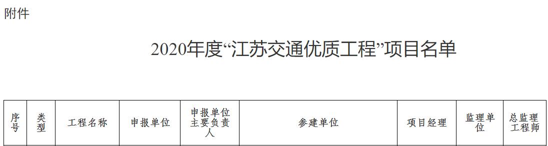 依据《江苏交通优质工程挂牌创建与评审办法》(苏交规〔2018〕3号)规定,江苏省交通运输厅评定10个工程项目为2020年度“江苏交通优质工程”,我开云体育-开云(中国)一站式服务官方网站