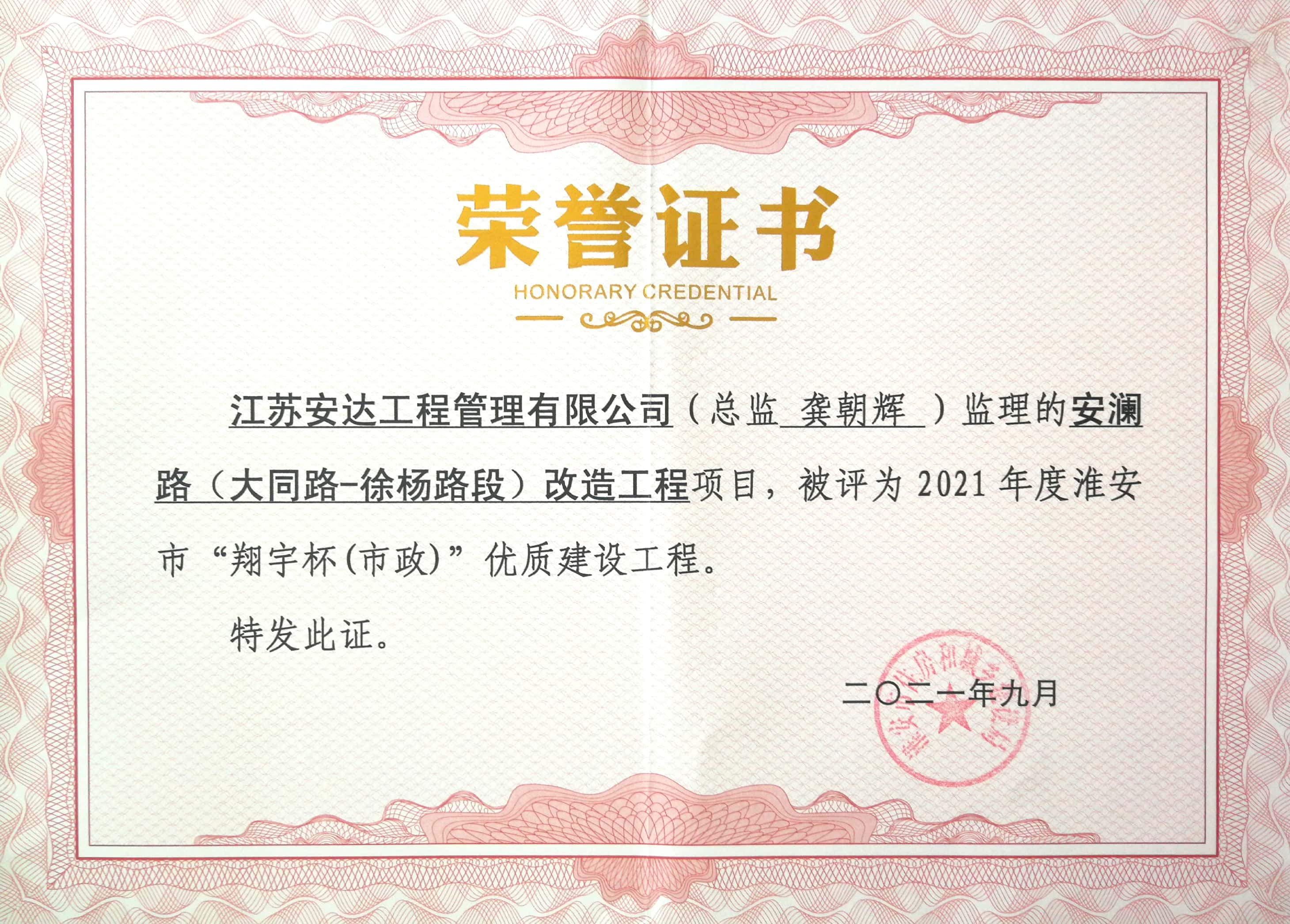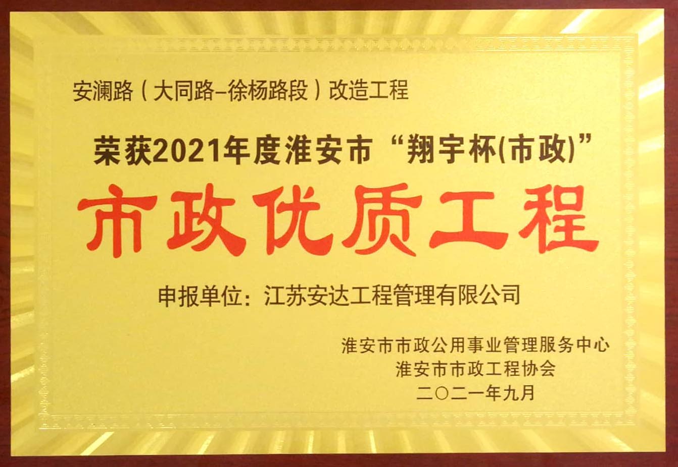 近日,由淮安市市政工程协会下发的关于表彰2021年度淮安市“翔宇杯(市政)”的决定中公布了我开云体育-开云(中国)一站式服务官方网站