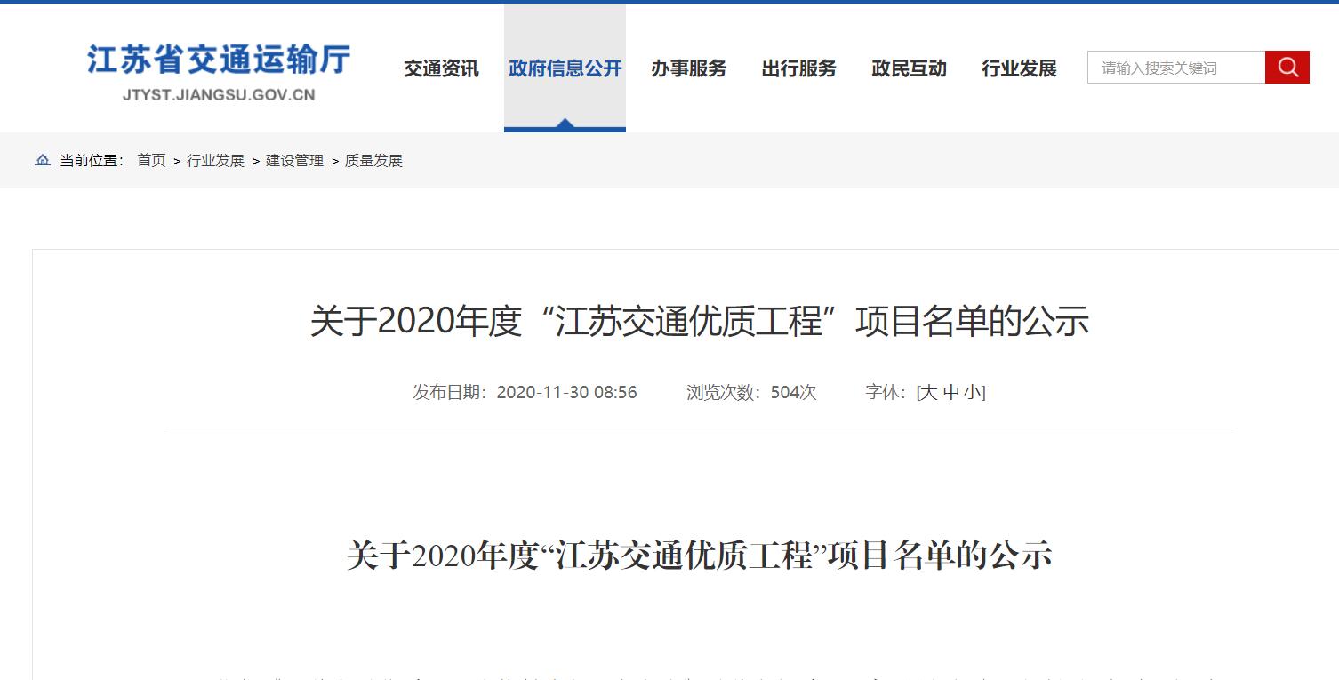 依据《江苏交通优质工程挂牌创建与评审办法》(苏交规〔2018〕3号)规定,江苏省交通运输厅评定10个工程项目为2020年度“江苏交通优质工程”,我开云体育-开云(中国)一站式服务官方网站