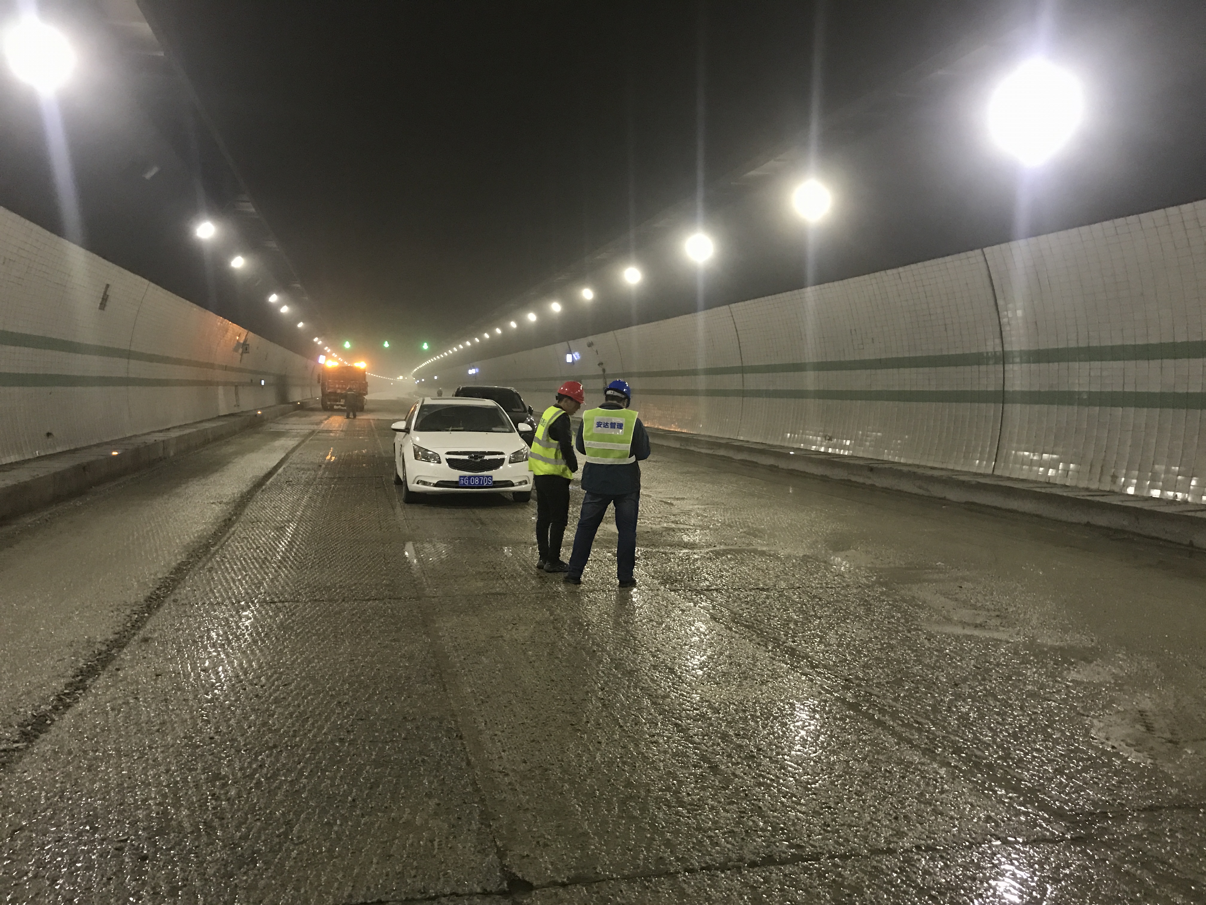连云港后云台山隧道白改黑工程右幅出港段,铣刨完成进行清理冲洗。