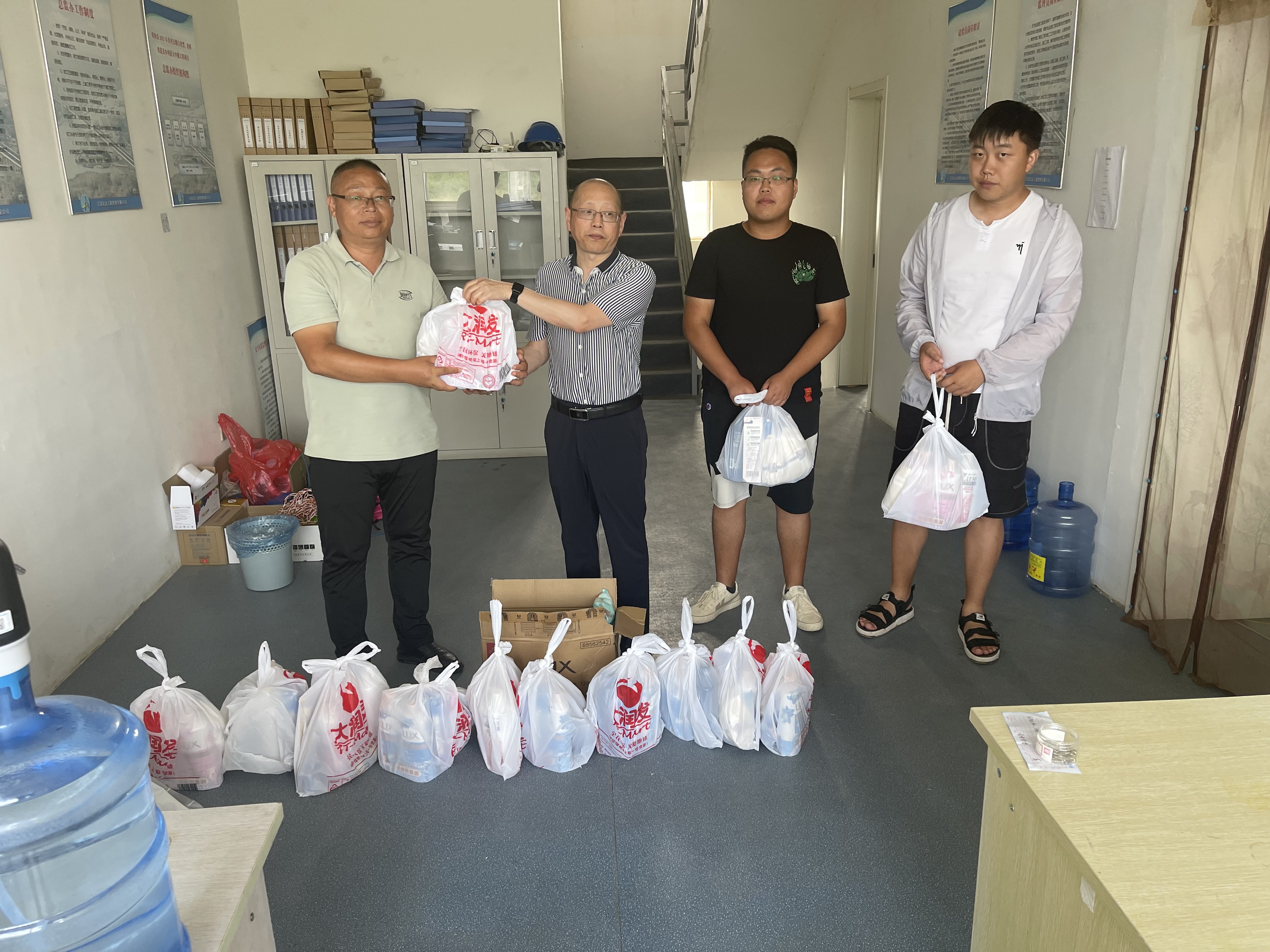 领导层来到各项目监理组,为他们发放高温防暑用品,并详细询问了防暑降温施工管理措施和具体施工推进中存在的困难问题。